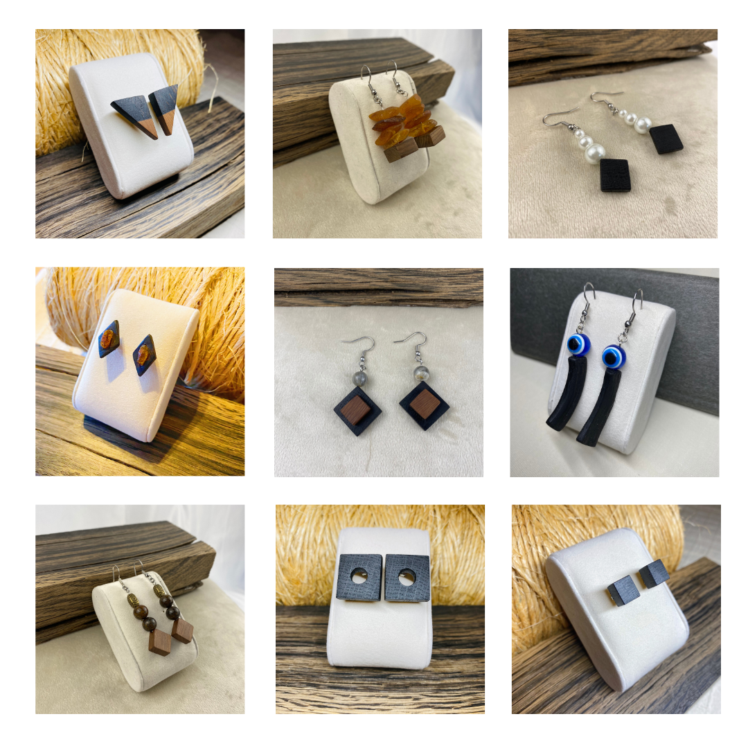 Unique Wooden Earrings handmade from exceptional historic wood.