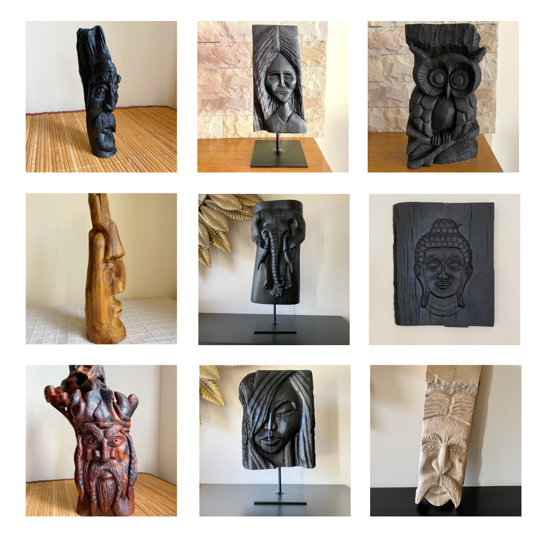 Unique Carved Sculptures made from Irish Bog Oak and Yew. The bog wood is approximately 3000 years old.